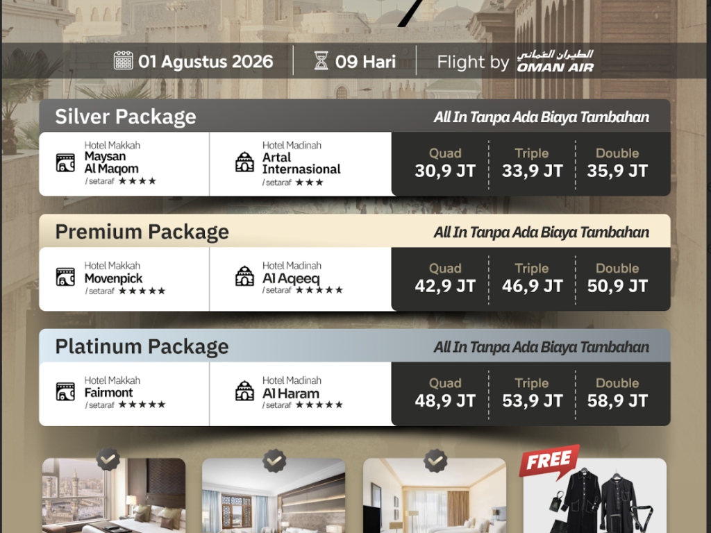 - Lebih dari 45 hari sebelum keberangkatan: dikenakan biaya administrasi Rp1.000.000 per jamaah.