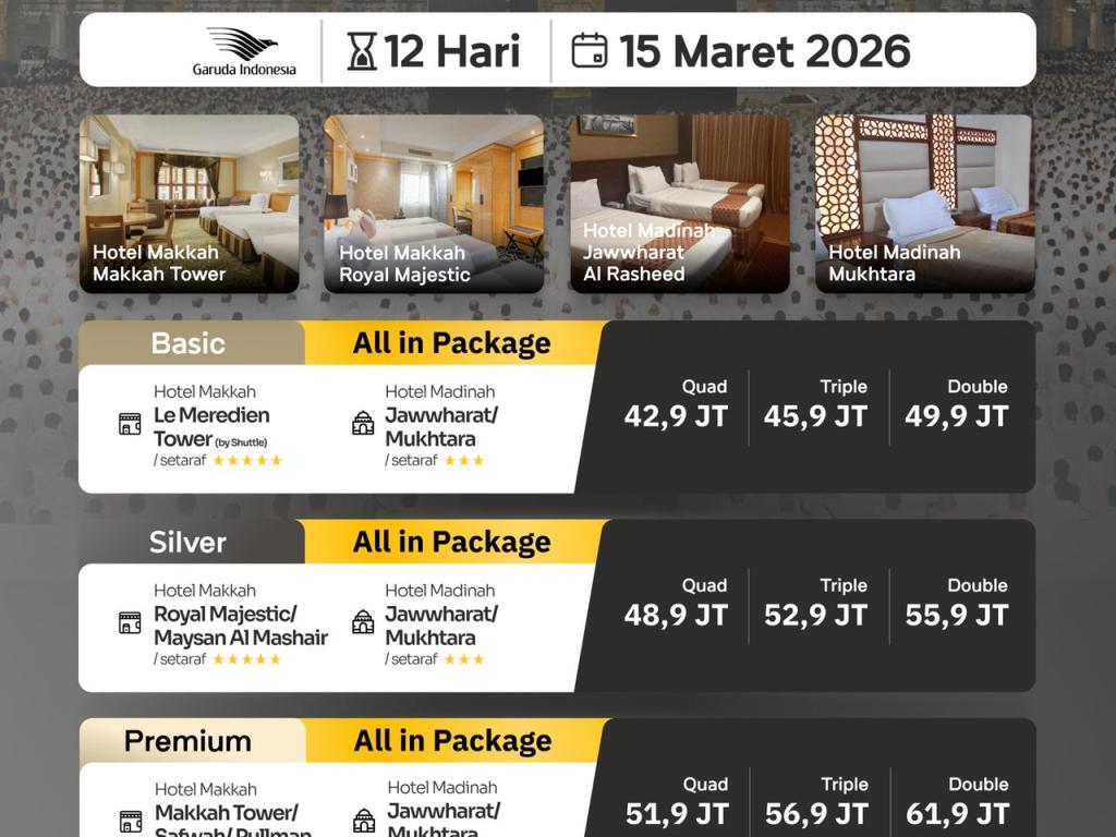 - Penyesuaian akan dilakukan berdasarkan ketersediaan dan kebutuhan rombongan.